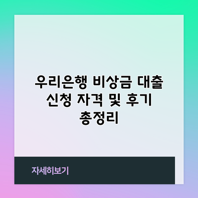 Q1: 우리은행 비상금 대출 신청 자격은 무엇인가요?