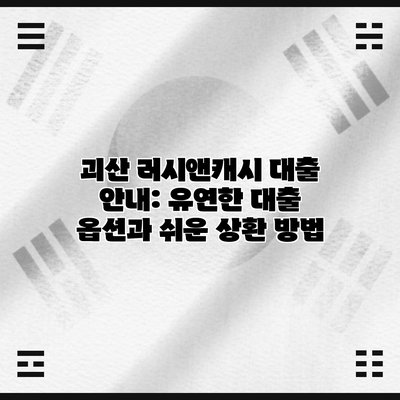 괴산 러시앤캐시 대출 안내: 유연한 대출 옵션과 쉬운 상환 방법