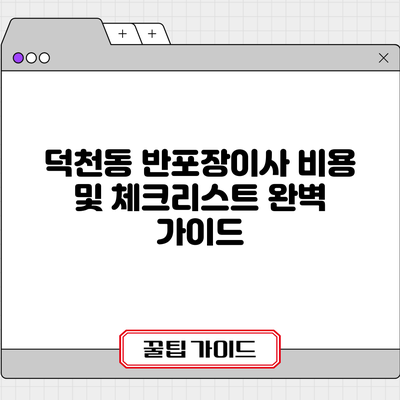 덕천동 반포장이사 비용 및 체크리스트 완벽 가이드
