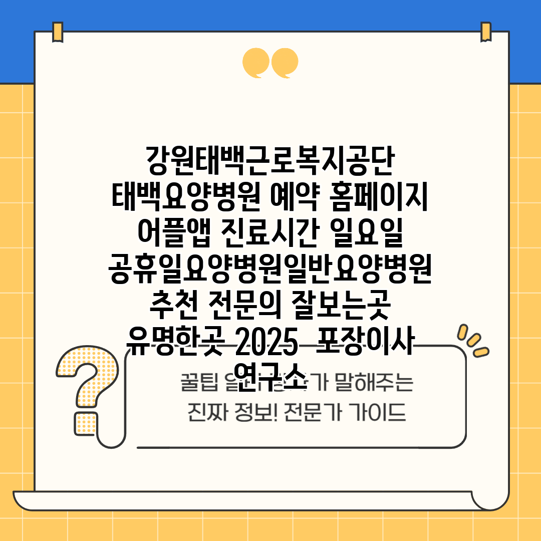 💡 강원태백근로복지공단 태백요양병원의 진료시간과 예약 방법을 지금 확인해 보세요. 💡