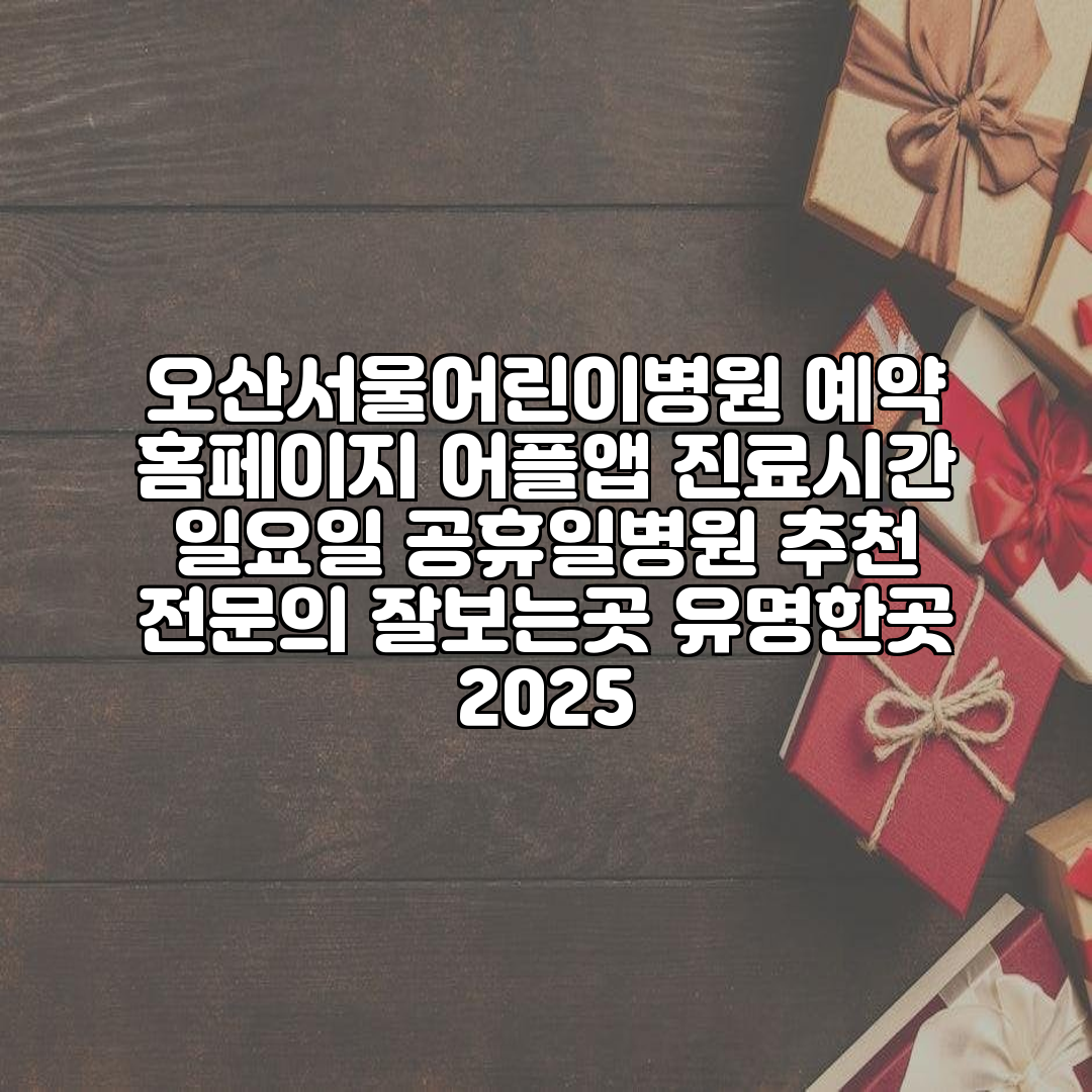 💡 오산서울어린이병원 예약 방법과 진료 시간에 대해 알아보세요. 💡