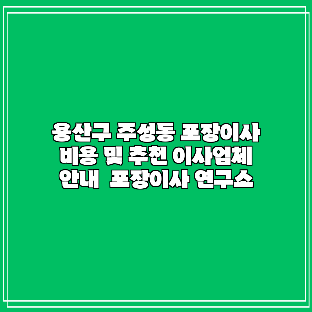 💡 용산구 주성동의 포장이사 비용 절감 팁을 알아보세요. 💡
