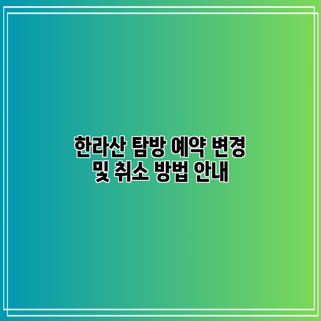 A: 한라산 탐방 예약 취소는 온라인 예약 시스템 또는 고객센터를 통해 가능합니다. 취소 요청 시 예약 번호와 관련 정보를 제공해야 하며, 취소 정책에 따라 환불 여부도 결정됩니다. 미리 취소 정책을 숙지하는 것이 좋습니다.