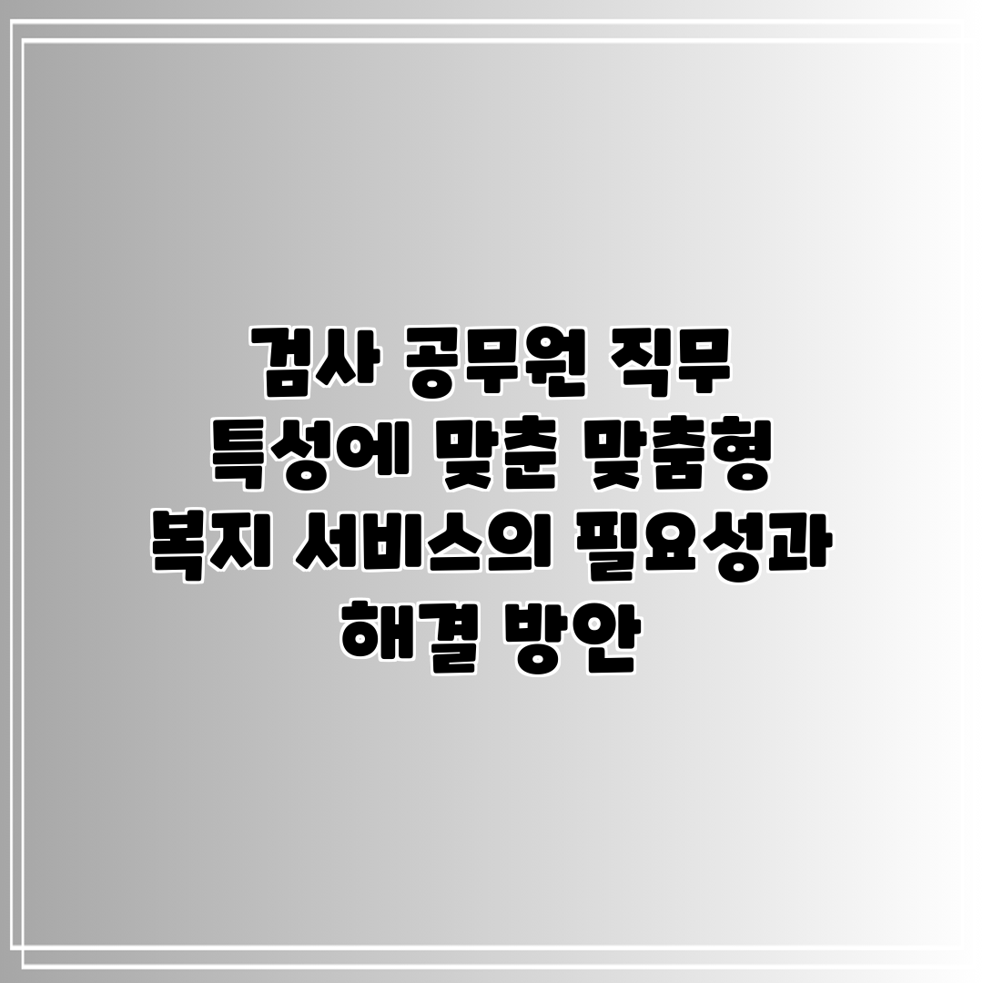 복지 서비스는 검사 공무원들의 직무 환경과 특성을 반영해야 하며, 단순한 정책 전환이 아닌 지속적인 관심과 노력이 필요합니다. 그들의 노동 환경이 개선될 때, 더 나은 사회가 만들어질 것입니다.