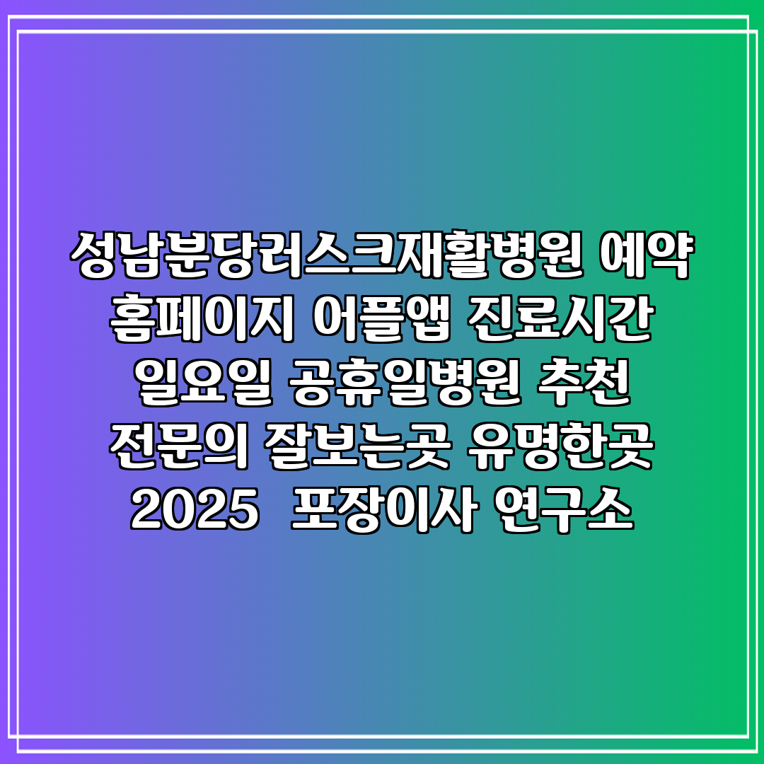 성남분당러스크재활병원 예약 홈페이지 어플앱 진료시간 일요일 공휴일병원 추천 전문의 잘보는곳 유명한곳 2025 포장이사 연구소