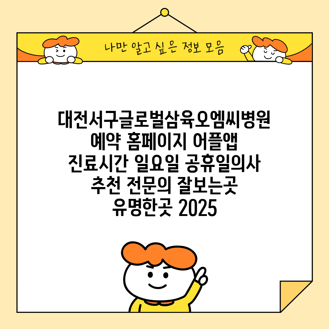 💡 대전서구글로벌삼육오엠씨병원 진료 시간과 예약 방법을 알아보세요. 💡