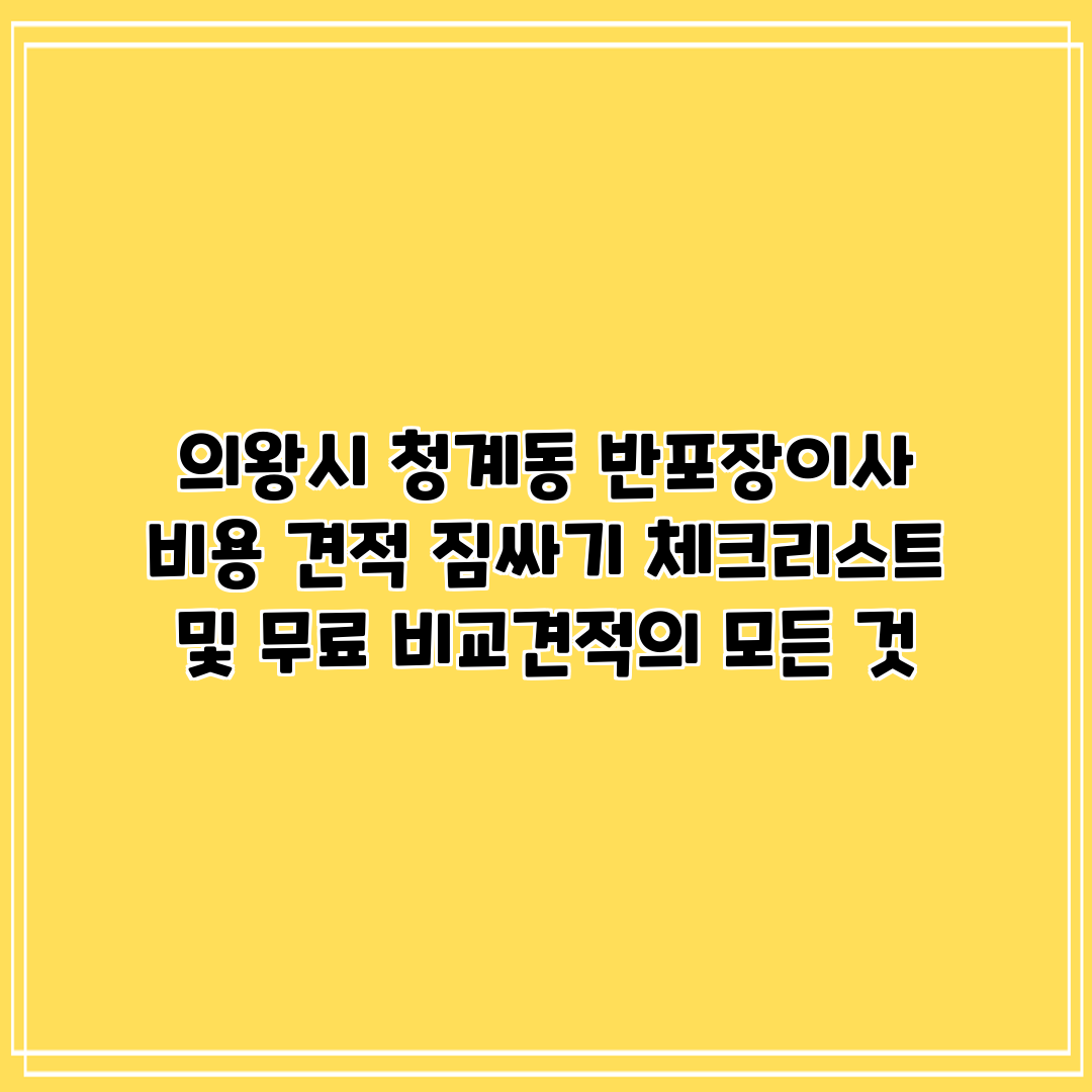 의왕시 청계동 반포장이사 비용 견적 짐싸기 체크리스트 및 무료 비교견적의 모든 것