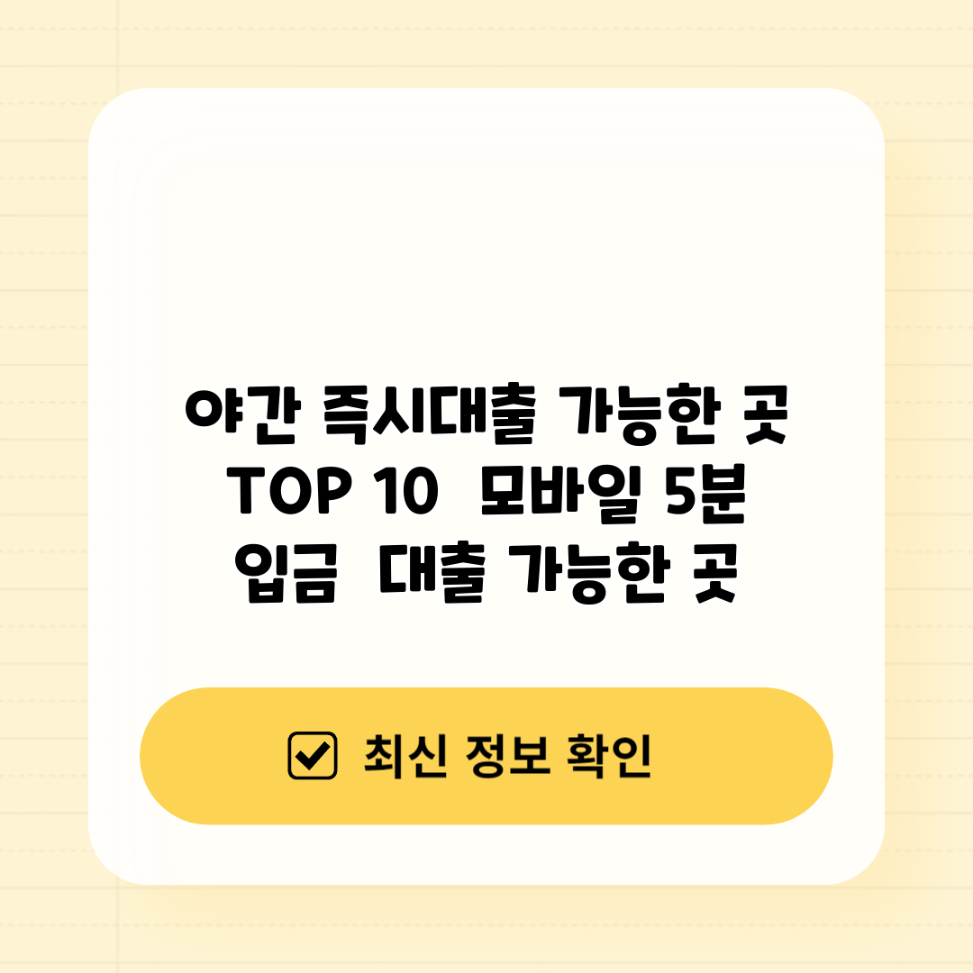 야간 즉시대출 가능한 곳 TOP 10 모바일 5분 입금 대출 가능한 곳