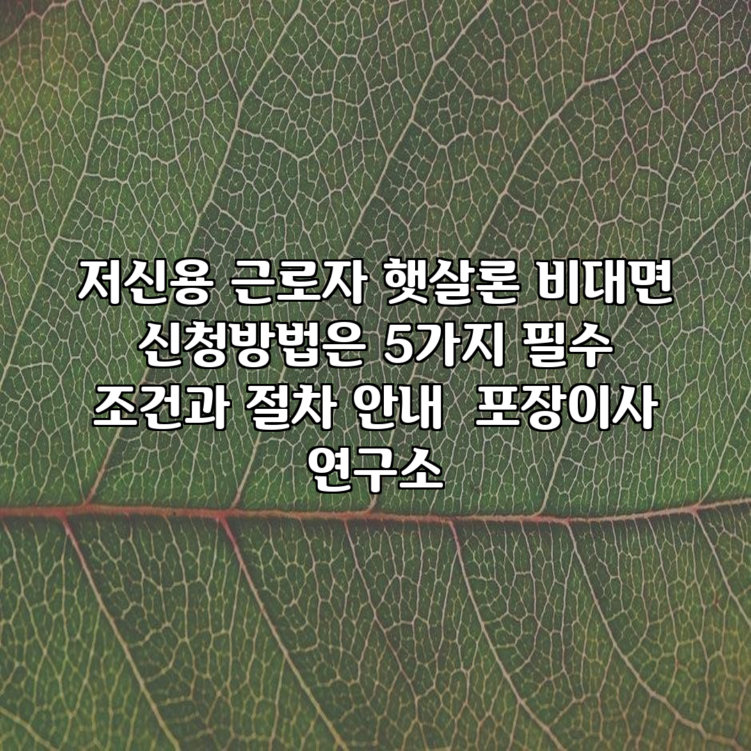 저신용 근로자 햇살론 비대면 신청방법은 5가지 필수 조건과 절차 안내 포장이사 연구소